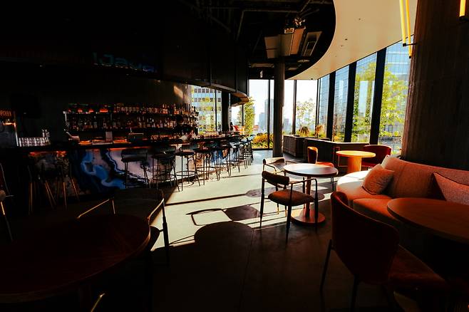 개방감 넘치는 바 겸 라운지. 정장을 차려입고 새끼손가락을 든 채 칵테일을 홀짝이는 장면을 상상했다면, 그보다 훨씬 캐주얼하다. 라이브 음악에 맞춰 춤을 추고, 게임을 하고, 친구들과 와하하 웃으며 안주를 씹는 분위기다.