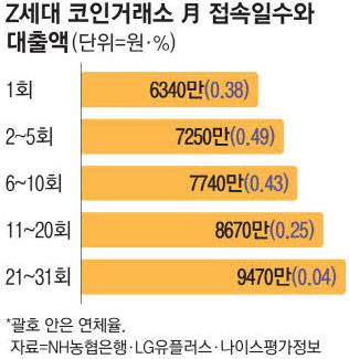 한 달에 21~31일을 코인거래소에 접속하는 ‘열혈 코인투자 Z세대’가 또래에 비해 49% 이상 대출을 더 받은 셈이다.