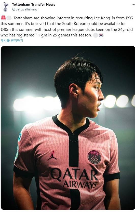 이어 “프리미어리그 토트넘·아스널·뉴캐슬 유나이티드·맨유 등의 관심이 보도됐다. PSG가 원하는 이적료는 4,000만 유로(632억 원)”라고 차기 행선지가 프리미어그가 될 것으로 점쳤다.