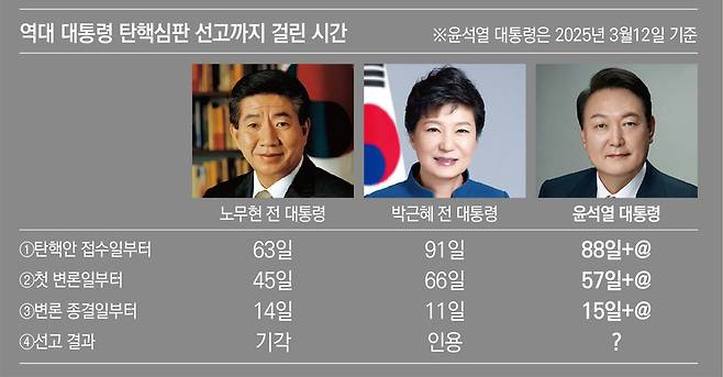 헌법재판소가 윤석열 대통령의 탄핵 심판 결정을 앞두고 있다. 지난해 12월27일 시작한 재판은 2월25일 변론 절차를 마쳤다. 재판관들은 2주째 평의를 이어가고 있다. 탄핵은 재판관 8명 중 6명 이상이 찬성해야 이뤄진다. 선고일은 아직 나오지 않았다. 헌재는 브리핑을 열지 않고 평의 과정도 철저히 비공개로 진행하고 있다. 기자들은 촉각을 곤두세우고 있다.