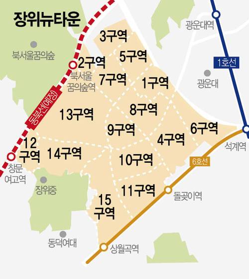 원래 장위뉴타운은 서울 성북구 장위동 일대 186만7000㎡의 땅을 15개 구역으로 나눠 아파트 2만3846가구를 짓는 계획으로 출발했다. 2005년 뉴타운에 지정될 당시만 해도 서울시 35개 뉴타운 중 최대 규모라 기대가 높았다.