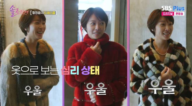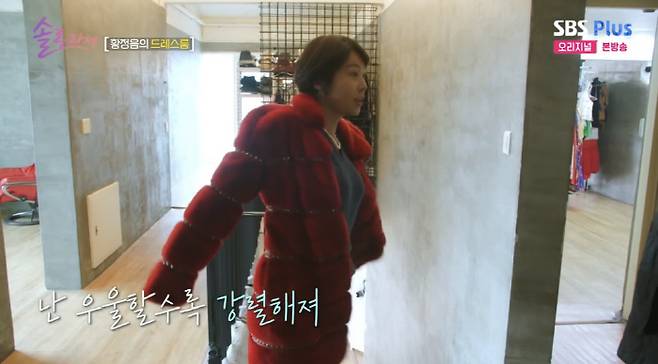 황정음은 화려한 옷들이 가득 찬 드레스룸에 대해 "사람이 심리적으로 불행하고 부족하면 약간 화려하게 꾸미게 된다. 많이 힘들었다"며 "우울하고 힘들수록 화려하게 입는다. 그러면 기분이 좋아진다. 내면이 풍족하면 만 원짜리만 입어도 괜찮다. 지금은 너무 행복하다"며 웃었다.