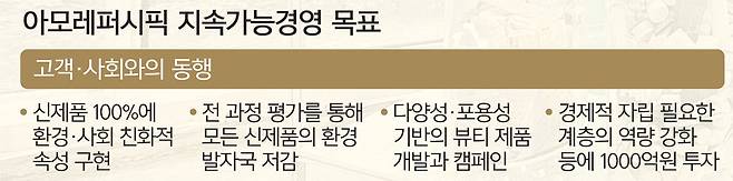 온실가스 배출량은 자사 사업장 내에서 발생하는 직접배출량(스코프1)과 전기 등을 구매하면서 발생하는 간접배출량(스코프2)의 총량을 2020년 대비 2050년까지 90% 감축하는 것을 목표로 하고 있다. 아모레퍼시픽은 2023년 전체 온실가스 배출량을 2020년보다 40%가량 줄였다. 태양광 설치 용량이 전년 3.59MW(메가와트)에서 5.58MW로 증가하면서 자가발전 비중이 약 5% 상승하고 재생에너지 조달량이 늘어난 덕분이다.