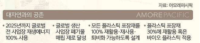 아모레퍼시픽은 지난해 경기 오산 뷰티사업장, 대전 데일리뷰티사업장, 안성 헬스케어사업장, 상해 뷰티사업장 등 생산사업장과 국내 물류센터의 사용전력을 100% 재생전력으로 전환했다. 비제조 사업장인 본사와 연구소를 포함하면 전사적으로 재생에너지 전환은 69% 수준이다.