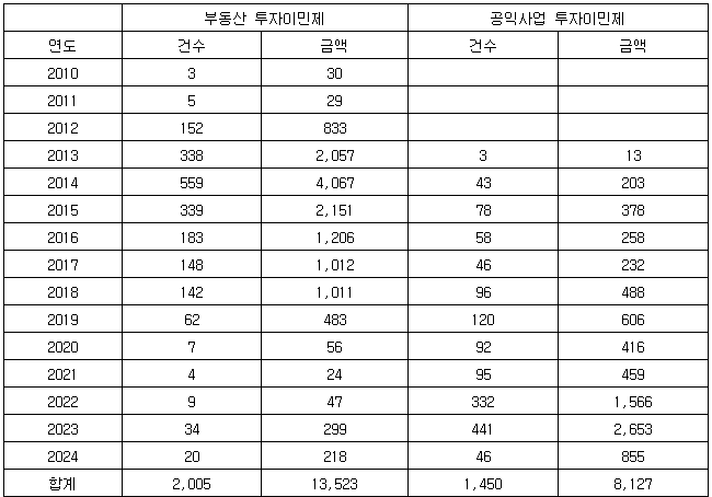공익사업 투자이민제도는 비교적 최근까지 성장세를 보이고 있다.