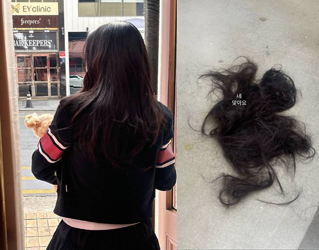 또 한웅큼 떨어진 잘려진 머리카락에는 "네 맞아요"라고 적어 파격 이미지 변신을 예고했다.