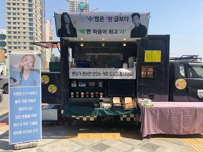 지난 2020년 3월 故 김새론은 tvN 드라마 '사이코지만 괜찮아' 촬영 현장에 커피차를 보냈다. 커피차에는 "'수'많은 '현'금보다 '예'쁜 마음이 최고'지'"라는 현수막과 '론이가 준비한 맛있는 커피 드시고 힘내세요!'라는 문구가 커피차 내부에 붙어 있었다.