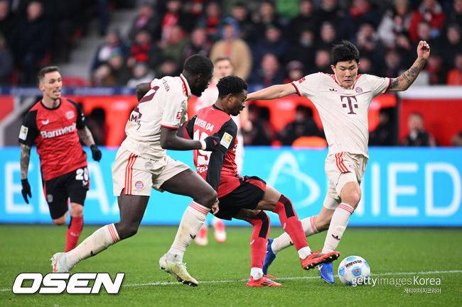 이미 3-0으로 앞선 바이에른은 안정적인 경기 운영을 펼쳤다. 반면 레버쿠젠은 최전방 공격수 패트릭 시크를 중심으로 롱볼과 크로스를 활용한 공격을 시도했지만, 김민재가 여러 차례 결정적인 수비를 펼치며 상대의 흐름을 차단했다.