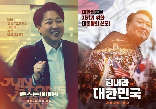 윤석열 대통령의 12·3 비상계엄 선포를 지지하는 내용을 담은 영화 '힘내라 대한민국'의 뒤를 이어 지난 6일 이준석 개혁신당 의원의 정치 영화 '준스톤 이어원'이 개봉했다.