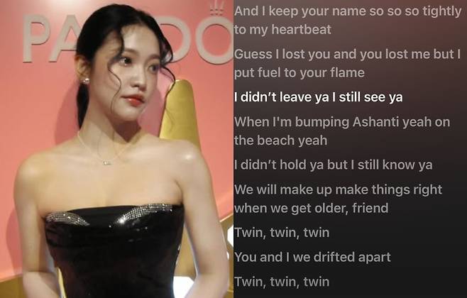 12일 故 김새론의 절친 예리는 자신의 계정에 블랙핑크 제니의 'twin'(트윈) 가사를 캡처해 올렸다.