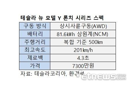 테슬라는 1월부터 홈페이지를 통해 뉴 모델 Y '론치(Launch) 시리즈' 가격을 7300만원으로 책정하고 사전 주문을 받고 있다. 론치 시리즈는 뉴 모델 Y 롱레인지 상시 사륜구동(AWD) 트림을 기반으로 한 출시 기념 한정판이다.