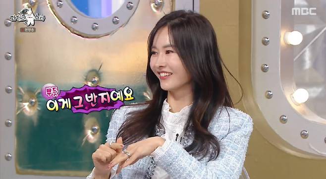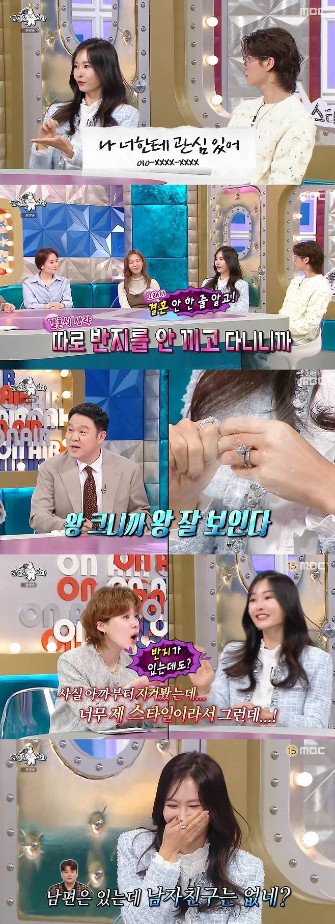 하원미는 "근데 나중에 남편이 그 얘기를 듣고 우리가 결혼식을 안 해서 반지 안 끼고 다니니까 결혼 안 한 줄 아는 거 같다면서 그 사건 이후로 멀리서 봐도 보이는 반지를 사주겠다면서 사줬다"며 남편에게 받은 받은 '대왕 다이아 반지'를 자랑해 놀라움을 자아냈다.