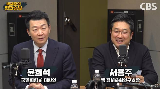 ◆ 박성태> 윤희석 대변인 역시 국민의힘의 여러 인사 중에 가장 합리적이에요. 지금 다 차마 저 말을 못 하거든요. 제일 합리적이에요. 차마 못 하는데 뭐 그래서 공천을 못 받은 것도 있지만, 어쨌든 제일 합리적이다.