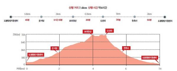 도봉산 Y계곡 탐방은 '정석' 같은 코스가 있다. 1호선 도봉산역에서 출발해서 도봉탐방지원센터까지 간 뒤 거기서 은석암~다락능선~포대정상~Y계곡~신선대를 타고 이후 마당바위 방면에서 천축사와 도봉대피소를 거쳐 다시 도봉산역으로 돌아오는 코스다. 전체거리 약 7.4km로 3시간 30분~4시간 정도 걸린다.