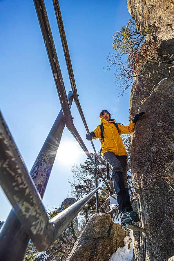 엄밀히 따지면 엄청나게 뛰어난 체력이나 등산 경험이 필요한 구간은 아니다. 난간이 높이별로 촘촘하게 들어서 있고, 발 디딜 곳을 잘 찾는 요령도 필요 없는 것이 대놓고 디딜 곳들이 보인다. 바위를 조금 깎아놓았다거나 쇠기둥이 박혀 있어 그런 곳들만 잘 밟으면 된다. 그러니 사다리를 오를 수 있을 정도의 근력과 약간의 담력만 있으면 크게 문제가 없다.