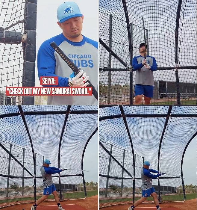 컵스 구단은 이날 SNS를 통해 스즈키의 타격 연습 영상을 공개했다. 영상 속 스즈키는 방망이가 아닌 다른 것을 들고 배팅 케이지에 들어섰다.