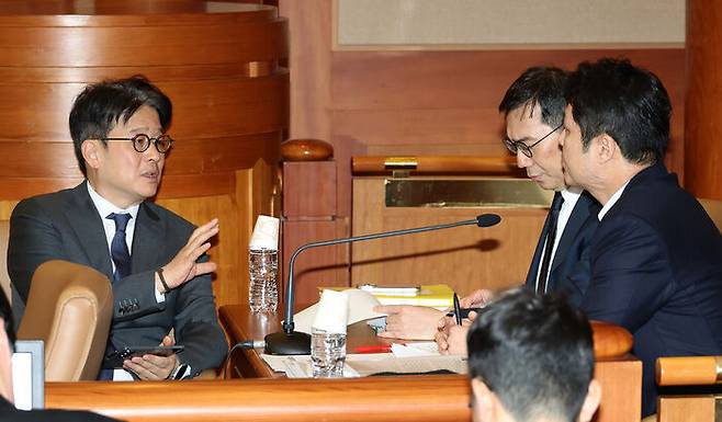 ▲ 이창수 서울중앙지검장(왼쪽부터), 조상원 중앙지검 4차장, 최재훈 중앙지검 반부패수사2부장이 지난달 24일 2차 변론기일에 출석해있다.