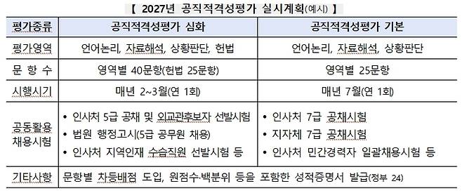 공직적격성평가를 별도 공통 역량 검정시험으로 실시하는 근거가 담긴 이번 개정안은 지난해 12월 발표한 공직적격성평가 공동활용 계획의 후속 조치다.
