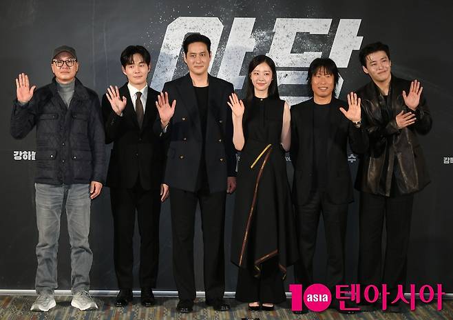 [텐아시아=조준원 기자]황병국 감독, 강하늘, 유해진, 박해준, 류경수, 채원빈이 13일 서울 강남구 메가박스 코엑스에서 열린 영화 '야당' 제작보고회에 참석해 포즈를 취하고 있다.