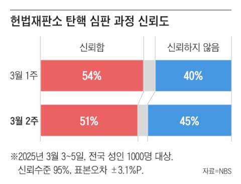 헌재 신뢰 51% vs 불신 45%… 헌재 신뢰, 탄핵 국면 시작 이후 최저 [NBS]