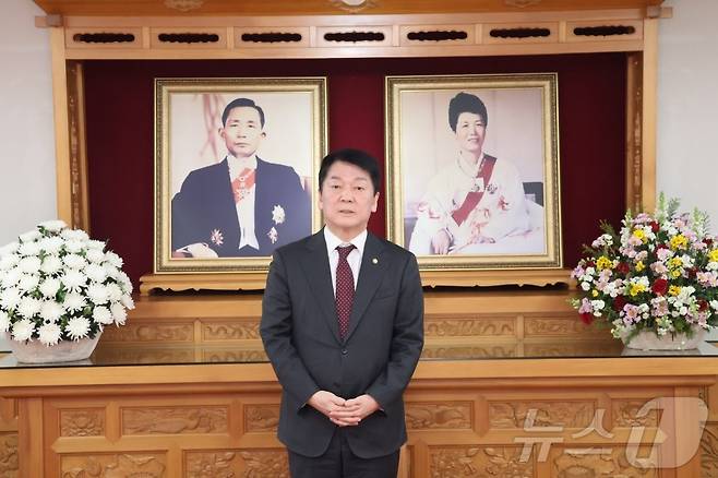 (서울=뉴스1) = 안철수 국민의힘 의원이 13일 경북 구미시 박정희 전 대통령 생가를 방문하고 있다. (안철수 의원실 제공, 재판매 및 DB 금지) 2025.3.13/뉴스1