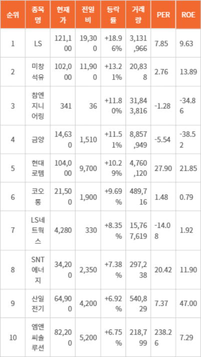 LS, 급등세로 1위 차지