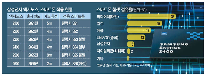 현재 SoC 조직은 차세대 엑시노스 2500과 엑시노스 2600 개발에 사활을 걸고 있다. 엑시노느 2500은 3㎚(나노미터) 공정에서 양산에 돌입했고, 성공할 경우 올 하반기 출시 예정인 갤럭시 Z 플립7·Z 폴드7 에 탑재될 가능성이 크다.