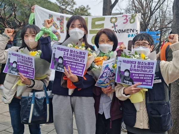 | ▲ 2023년 3월 8일 열린 3.8 비정규직 여성노동자대회에 참가한 이현경 조합원(오른쪽 맨 끝) |