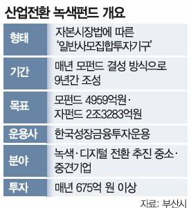 13일 부산시에 따르면 시는 '부산 산업전환 녹색펀드'를 통해 향후 9년 간 해마다 551억 원 규모의 모펀드를 조성한다.