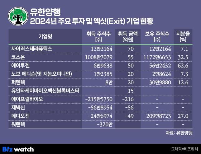 유한양행은 지난해 지분 매각을 통한 적극적인 수익 실현에도 나섰다.