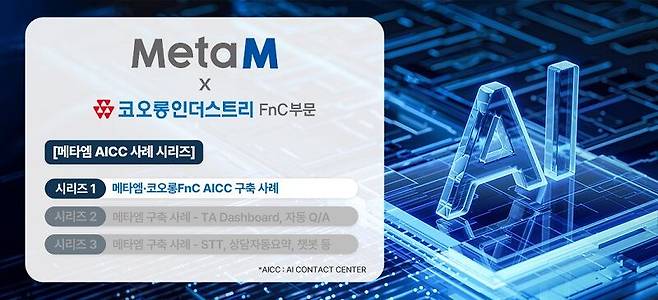 최근 메타엠(대표 신인수)은 코오롱인더스트리FnC부문(이하 코오롱FnC)에 최첨단 AI 기술을 접목한 AICC 콜센터 시스템을 성공적으로 구축했다고 밝혔다.