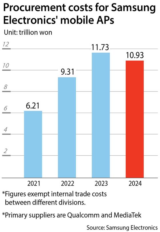 Rising procurement costs of mobile application processors (AP), which act as the “brain” of smartphones, surpassed the mobile division’s operating profit at 10.93 trillion won ($7.5 billion), according to the company's business report released on electronic disclosure on Tuesday. For its Galaxy S25 series, it purchased third-party processors designed by Qualcomm and produced by TSMC.