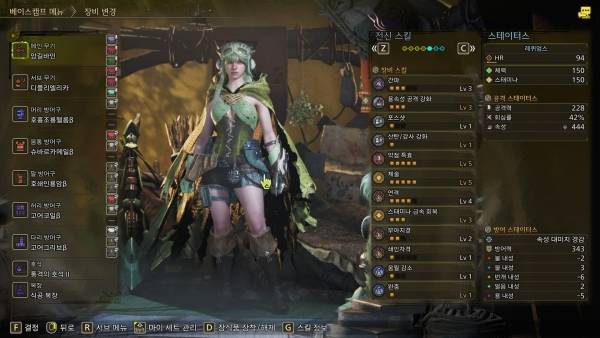머리부터 발끝까지 여러 파츠에 붙은 스킬과 장식품 슬롯을 하나하나 조합해 자신만의 최적의 세팅을 완성해 나가는 과정이 몬스터 헌터의 핵심 재미 중 하나다.
