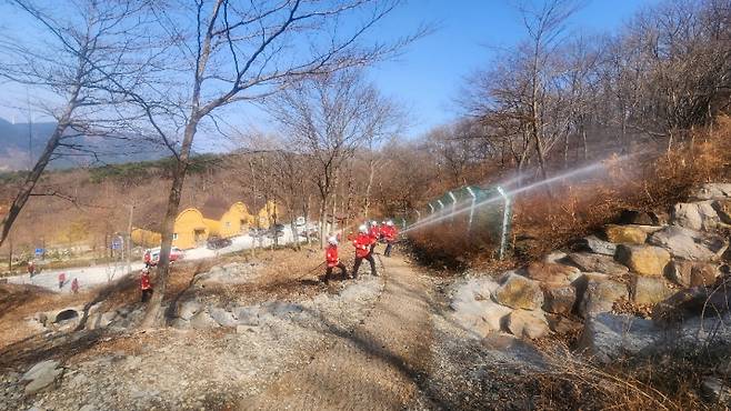 이번 모의훈련은 날이 따뜻해지고 야외활동이 늘어나는 시기인 만큼 이용객이 많은 자굴산 자연휴양림에서 가상 산불상황을 부여하여 훈련을 실시했다. 산불소화시설 등 기계화시스템을 활용해 초동진화, 방화선 구축, 뒷불정리 등 개인별 임무 수행에 중점을 두고 진행했다.