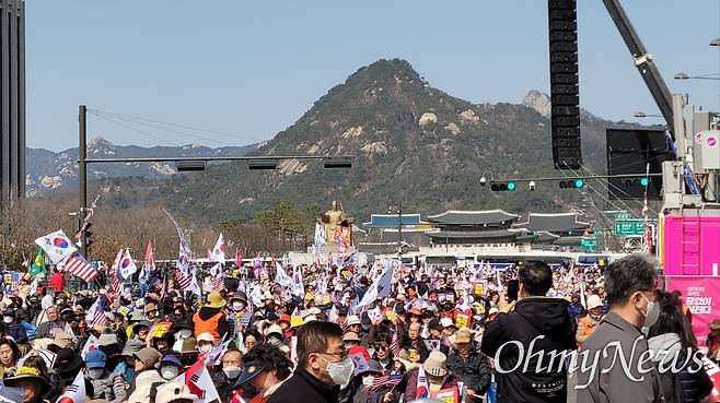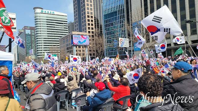 | ▲ 윤석열 대통령에 대한 헌법재판소 탄핵심판 선고가 임박한 가운데, 15일 오후 서울 광화문에서 전광훈 사랑제일교회 목사가 이끄는 탄핵 반대 집회가 열리고 있다. |