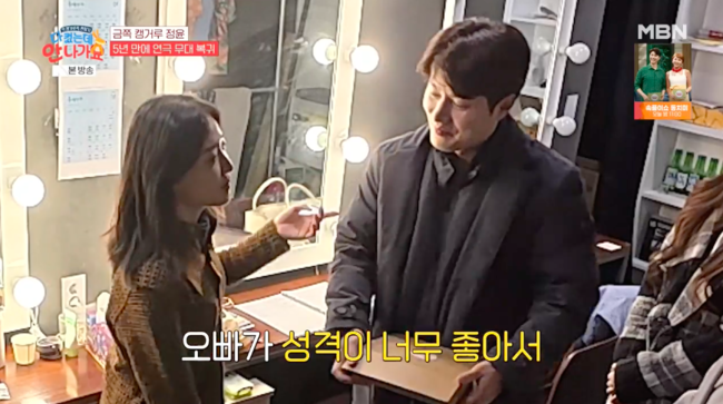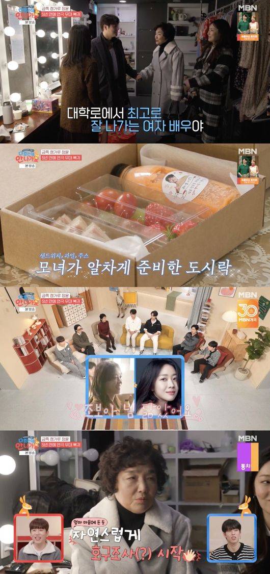 이날 아침부터 신정윤의 엄마와 동생은 연극 무대에 복귀한 신정윤을 위한 서포트 도시락을 준비했다. 엄마는 대기실에 들어서자마자 아들의 상대역인 배우 유인을 향해 “미인이 계시네”라며 눈을 떼지 못했다.