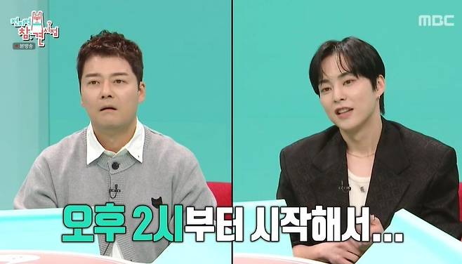 이날 시우민이 '전참시'에 처음 등장했다. 전현무는 "엑소에서 맏형인 게 아직도 믿기지 않는다"고 동안 외모를 언급하며 "시우민, 저, 양세형은 테니스 메이트"라고 자랑했다. 시우민은 "이제 4년 차 됐다"고 했고, 양세형은 "엄청 잘 친다. 파워도 좋고 빠르니까"라고 밝혔다.