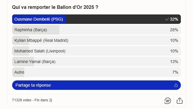 매체는 최근 "누가 2025년 발롱도르를 수상할 것 같나?"라는 투표를 시작했다.
