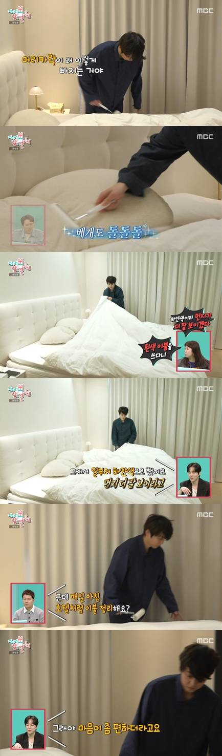 호텔처럼 이불 정리를 한 시우민의 행동에, 전현무는 "매일 아침 이렇게 이불 정리하냐"고 물었다. 시우민은 "그래야 마음이 좀 편하다"고 답했다.