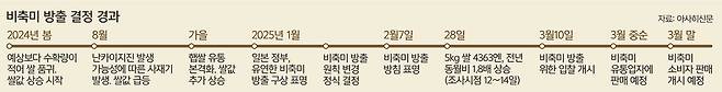 심상찮은 상황에 일본 정부는 지난달 7일 비축미 21만t 방출 계획을 발표했다. 일본은 쌀생산량이 큰 폭으로 줄어드는 경우에 대비해 매년 약 20만t, 5년분 100만t를 보관하도록 법률로 정하고 있다.
