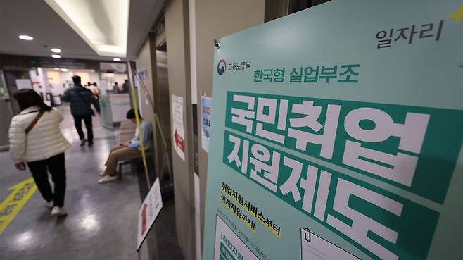 ▲ 12일 서울서부고용센터에 게시된 국민취업 지원제도 안내판