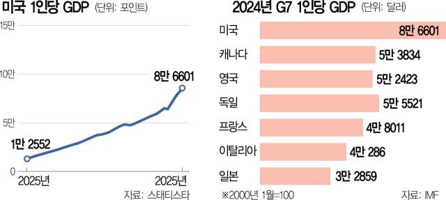 1인당 GDP 8만弗 넘어 G7 국가 압도하지만
