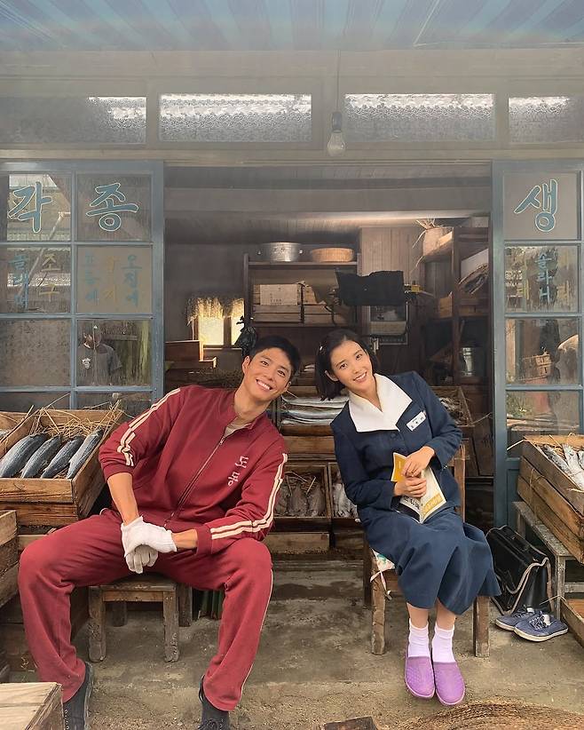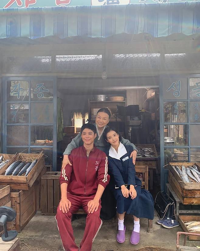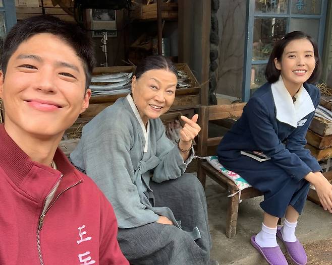 박보검은 아이유와 함께 생선과 양배추를 팔던 좌판 촬영장에서 극중 친할머니로 출연하는 김용림과 다정한 모습도 공개했다.