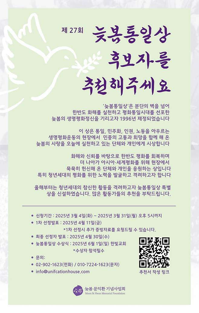 늦봄문익환기념사업회 ‘제27회 늦봄통일상’ 수상자 공모