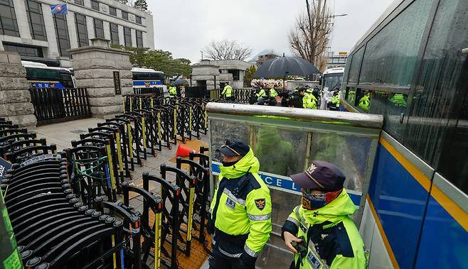 '철조망으로 꽁꽁'… 탄핵 앞두고 요새화되는 헌재 [한강로 사진관]