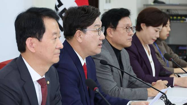 ▲ 국민의힘 권성동 원내대표가 16일 서울 여의도 국회에서 윤석열 대통령 탄핵 심판과 관련한 당 입장 등 현안 관련 기자간담회를 하고 있다.