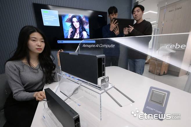 인공지능(AI) 기술에 대한 수요가 늘면서 국내 업체가 AI반도체 칩 개발에 박차를 가하고 있다. 16일 경기 성남시 리벨리온에서 연구원이 AI반도체 '아톰카드'에 대한 연구 및 개발을 하고 있다. '아톰'은 거대언어모델(LLM)과 이미지 인식 AI를 효과적으로 처리할 수 있고 기존 AI 칩 대비 전력 효율성이 뛰어난 고성능 저전력 AI 전용 칩이다.