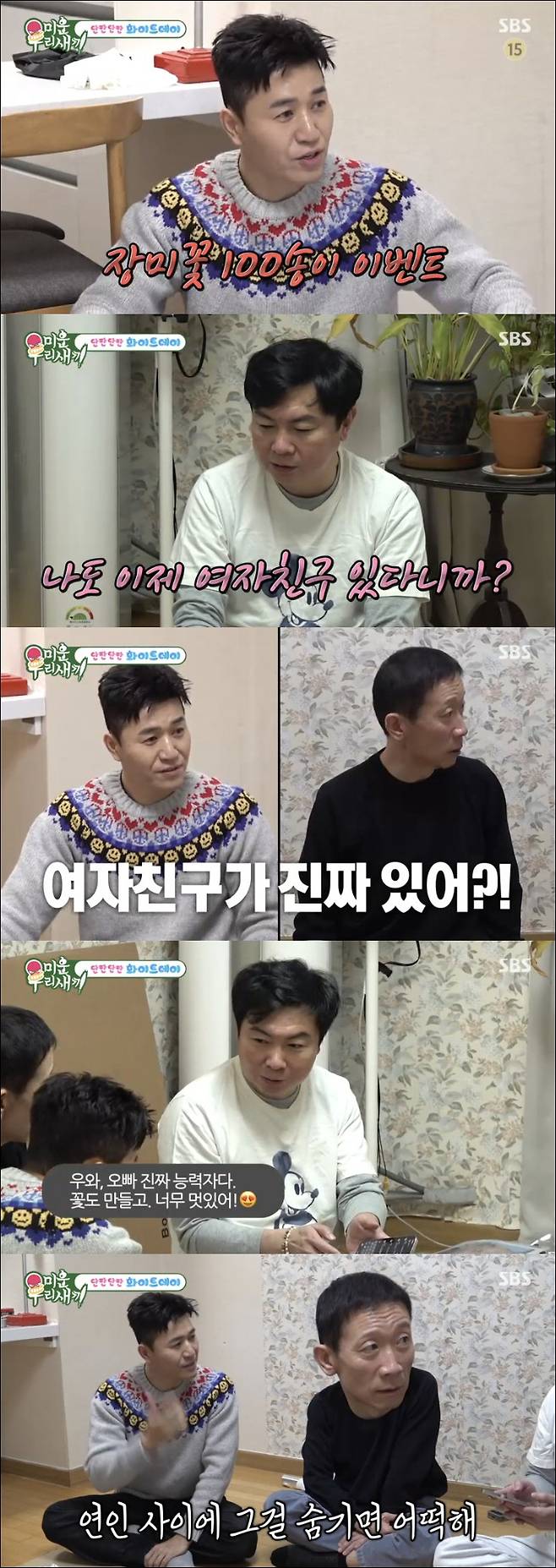 16일 방송된 SBS 예능프로그램 '미운 우리 새끼'에서는 화이트데이를 앞둔 김종민, 정석용, 임원희가 출연했다.