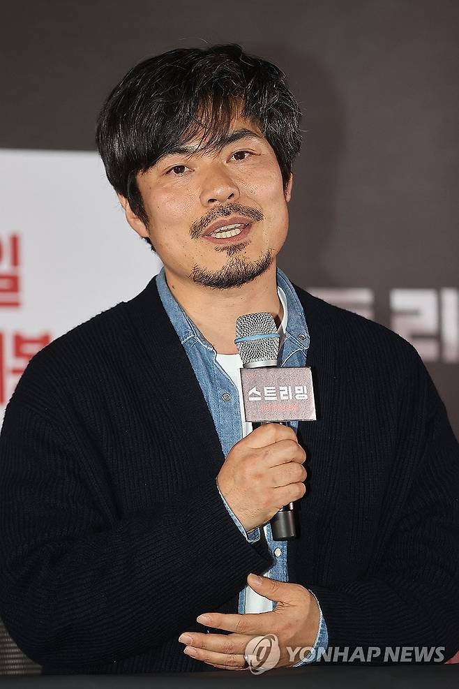 (서울=연합뉴스) 류효림 기자 = 조장호 감독이 17일 서울 송파구 롯데시네마 롯데월드몰점에서 열린 영화 '스트리밍' 시사회 및 기자간담회에서 인사말을 하고 있다. 2025.3.17