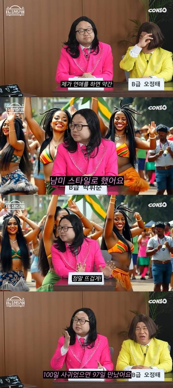 평소 수줍음이 많지만 여자들과 함께하는 자리에서는 수줍음이 사라진다는 박휘순은 "예전에는 연애를 하면 남미 스타일로 했다. 정말 뜨겁게 했다. 100일을 사귀었다면 97일을 만났다"고 입을 열었다.